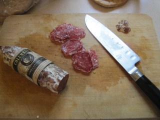 To accompany this I added some fennel salami which Alex found in the local supermarket. Given that the salami section had replaced a pretty unappealing cold cut counter, i was excited to test it out. I must say i was impressed, although it didn’t have the strongest taste of fennel, it was nevertheless yummy. It has to be sliced super thin for me though, i’ve never been a fan of it when it’s thickly sliced, the texture’s just too chewy.