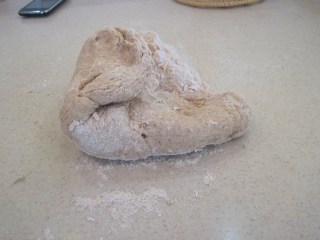 Mix together until it has formed a ball and then tip out onto a worktop and begin to knead