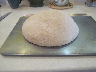 If you want to, i did, you can make some cuts in the top and then dust it with flour just before you put it in the oven. Cook it for about 30 mins, until the outside is crisp and sounds hollow when you tap it. Leave to cool on a wire rack and then tuck in.