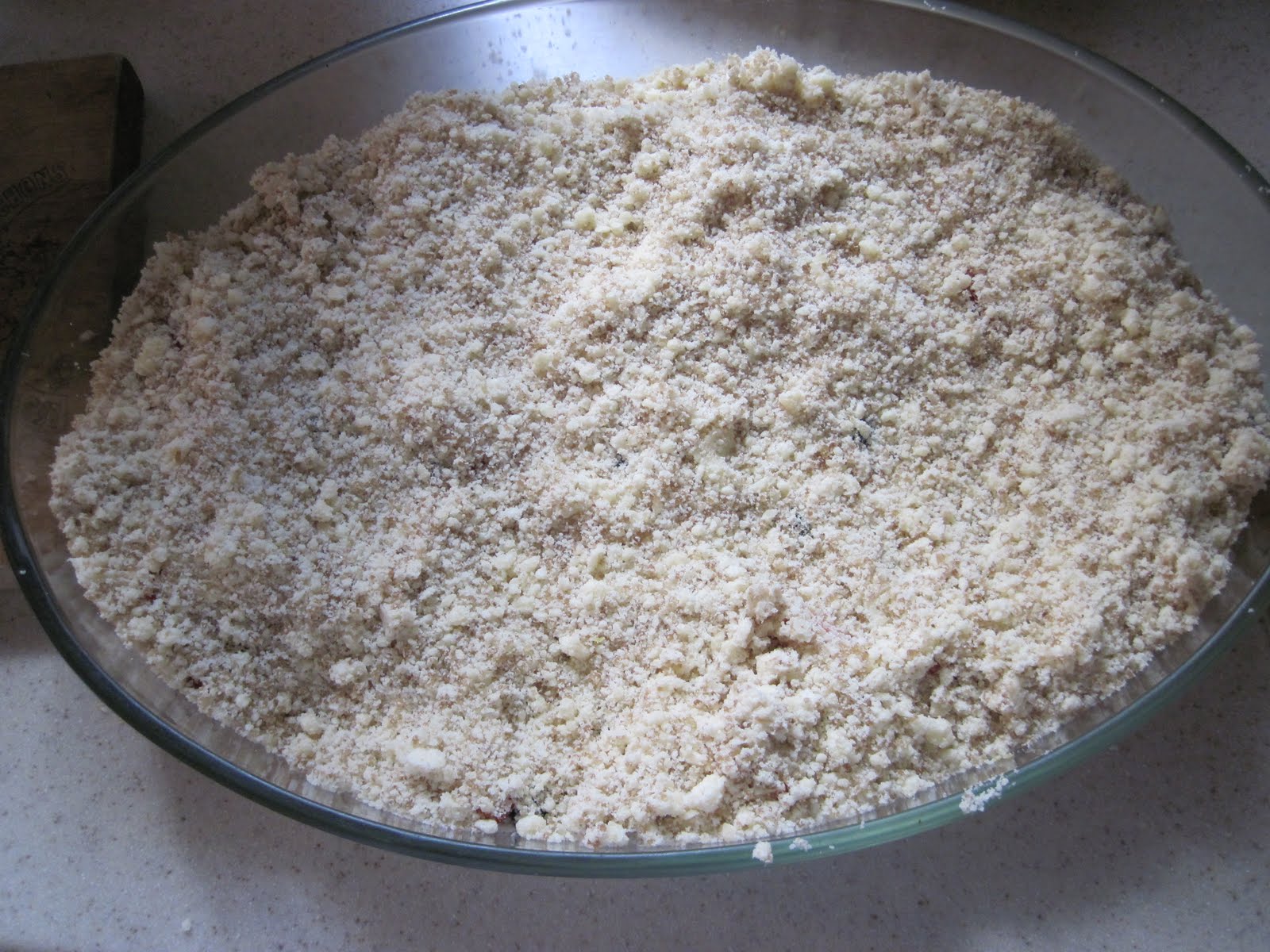 Next make the crumble topping, rub the butter into the flour until it looks like wet sand
