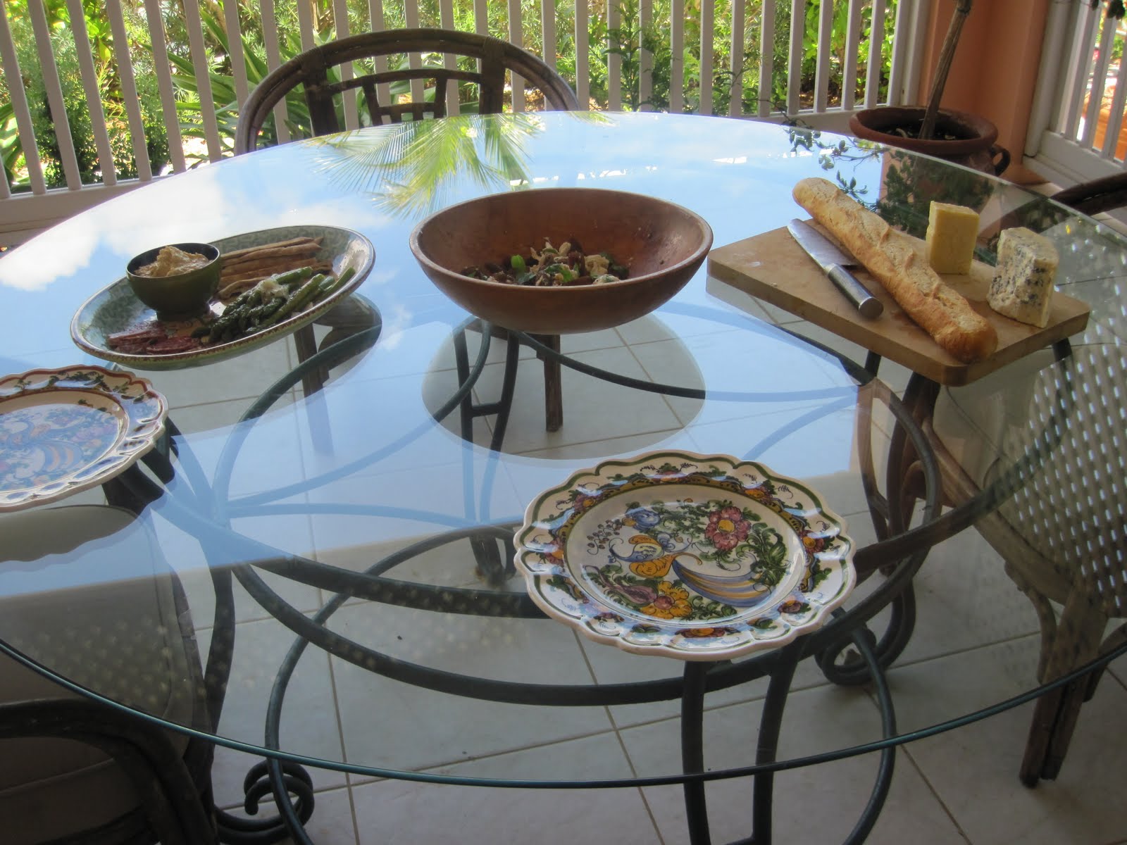 To finish it all off we had some fresh baked french bread and some cheese, for no other reason than we wanted some, nothing else. All in all it was pretty satisfying, lots of different things going on, and when coupled with being able to sit outside in the breeze, it was lovely.