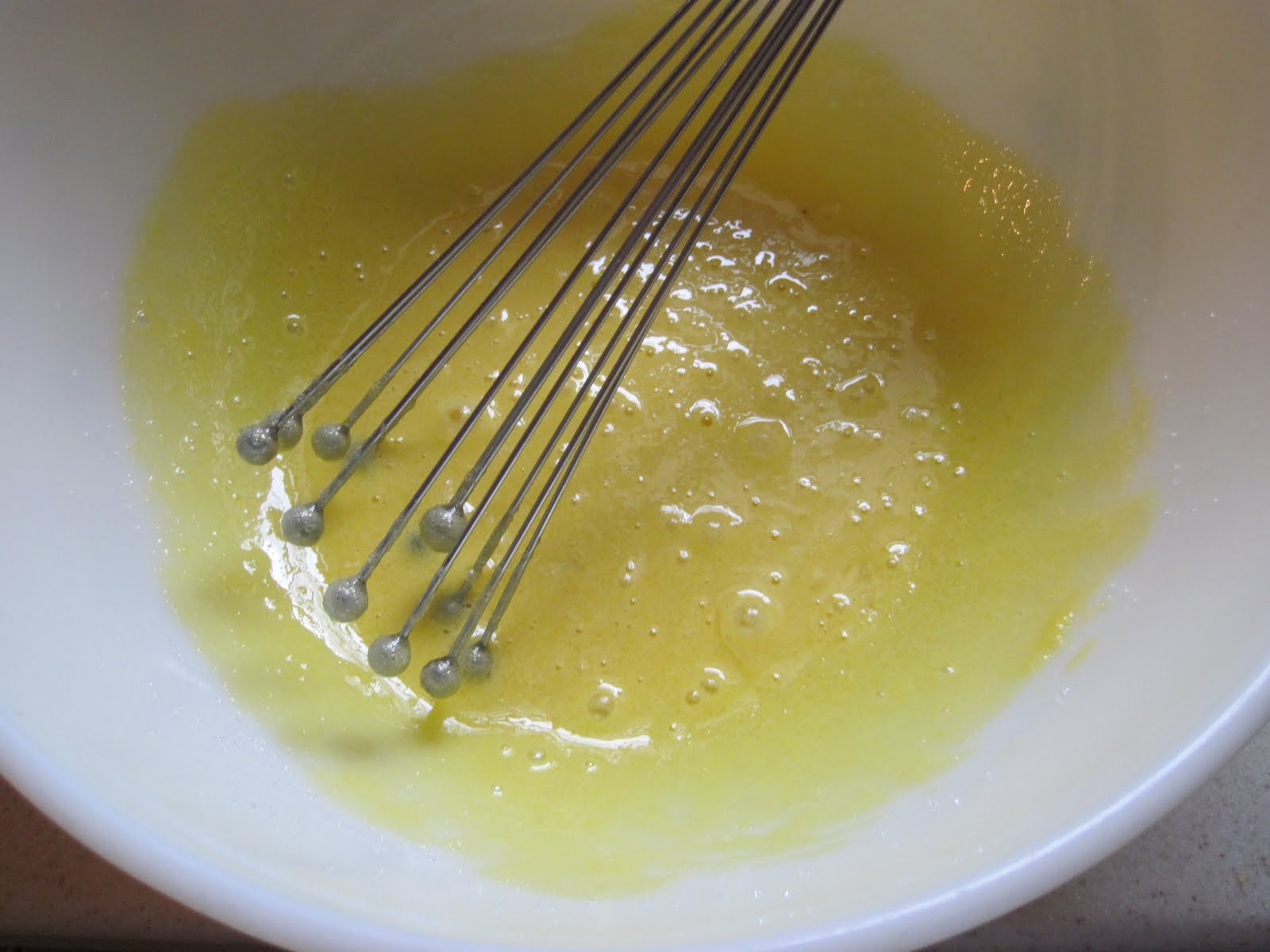 Melt the butter in a saucepan and add it, along with the water to the dry ingredients