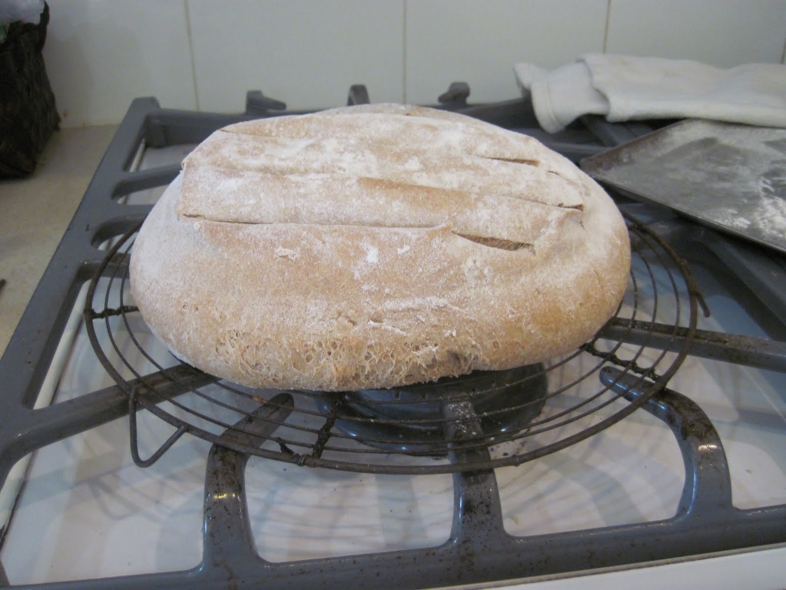 If you want to, i did, you can make some cuts in the top and then dust it with flour just before you put it in the oven. Cook it for about 30 mins, until the outside is crisp and sounds hollow when you tap it. Leave to cool on a wire rack and then tuck in.
