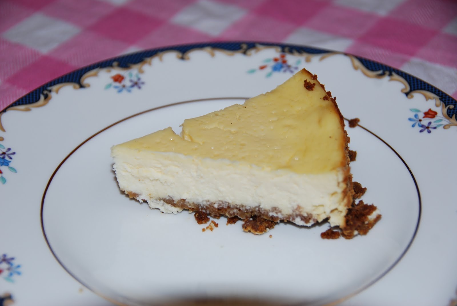 Well as you’ve probably noticed, the blog has been a wee bit neglected as of late so apologies for that. My love flew away to thailand and with him seemed to go my deisre to cook, but finally, i’ve stopped bumbling around and got back down to some cooking. Now, in all honesty, this is partly because i no longer have a resident Alex whipping up delicious Asian creations for me on a daily basis and the cravings are getting BAD! I needed a chilli fix, pronto. Also because the boredom of the countryside struck and i needed something to do. Since my return, mum has been asking for one thing and one thing only, cheesecake. It’s her big weakness so one of those was in the works today as well. Her favourite is the plain, new york style cheesecake so that’s what we went for. The good thing about this kind of cheesecake is you can basically please everyone. Make up one of these and then you can make up some different compotes or sauces and plonk them all down on the table and let everyone help themself, voila you have several differnet cheesecakes for the price of one. It’s also just a good base recipe to have as you can use it as a starting block and add a whole host of flavours and it’ll completely change it. For example, add some lemon juice and zest or some grated cinnamon, swap out the ginger biscuits for another flavour, anything you want really. I will admit, this isn’t the speediest thing to make, whilst the actual making of it is easy and has hardly any ingredients, you do have to fiddle with the oven temperatures a bit. You also have to show super-human self control not to eat it straight away as it needs to chill in the fridge over night, i know, i know, you really won’t want to but it’ll be worth it, i promise. This cheesecake serves 6-8