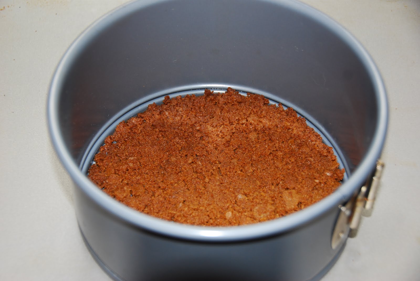 First things first, preheat the oven to 180C/160C if you have a fan oven 350F. Then melt the butter and crush up the biscuits, either in a food processor or in a bag with a rolling pin- this way is good for taking out some frustration. Combine the melted butter and the crushed biscuits and press into the bottom of a springform cake tin lined with parchment, bake the base for 10 minutes and then remove from the oven.