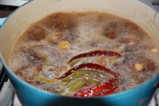 This is pretty easy i have to say, you pretty much just bung everything into a big pot and bring it to the boil, then simmer for about 20-30 minutes until you like what you’re tasting, removing the lime leaves about halfway through. Add the meatballs and simmer for 10 minutes until the meatballs are cooked through. Now, for some reason, my chillis were just not doing it for me heatwise (i think waitrose are having a couple of blah batches at the moment) so i added 10 dried red chillis to the mix after the soup had been on for 5-10 minutes. Obviously you don’t have to add this many chillis, it’s completely up to you, depending on how spicy you like things, but, as they say, some like it hot.