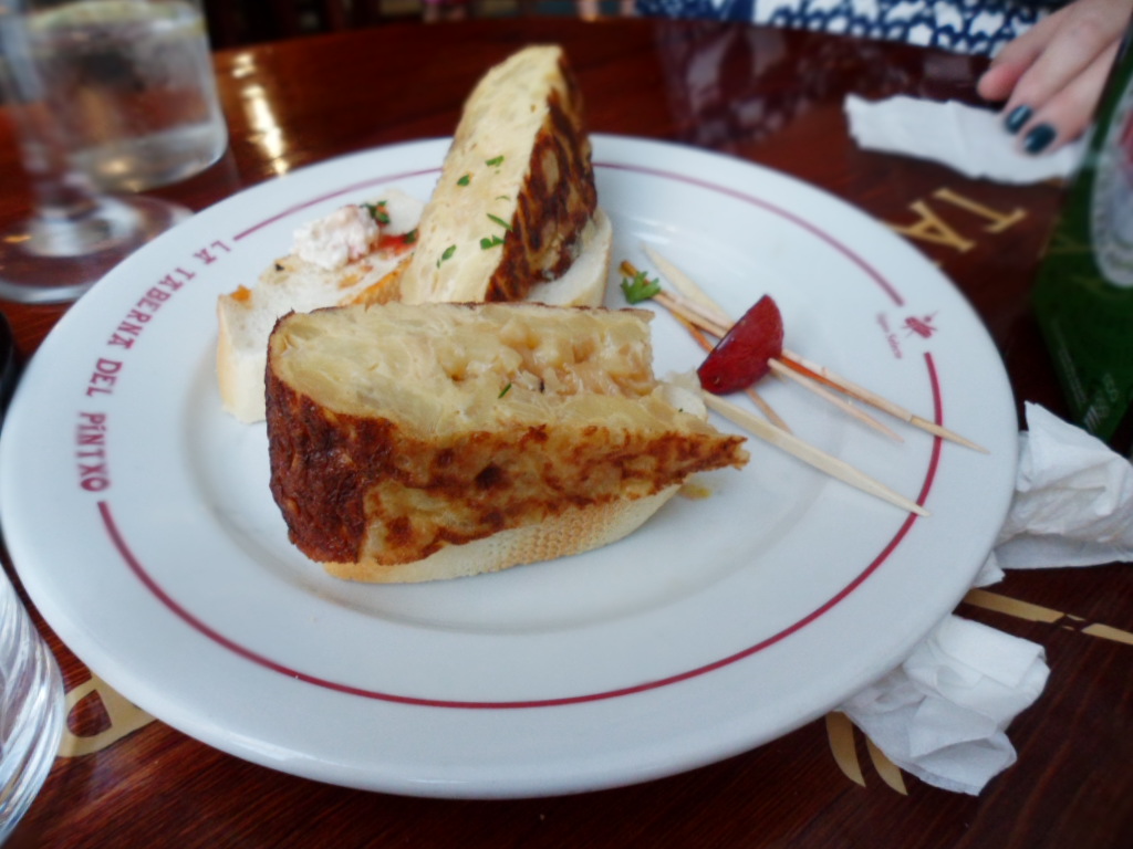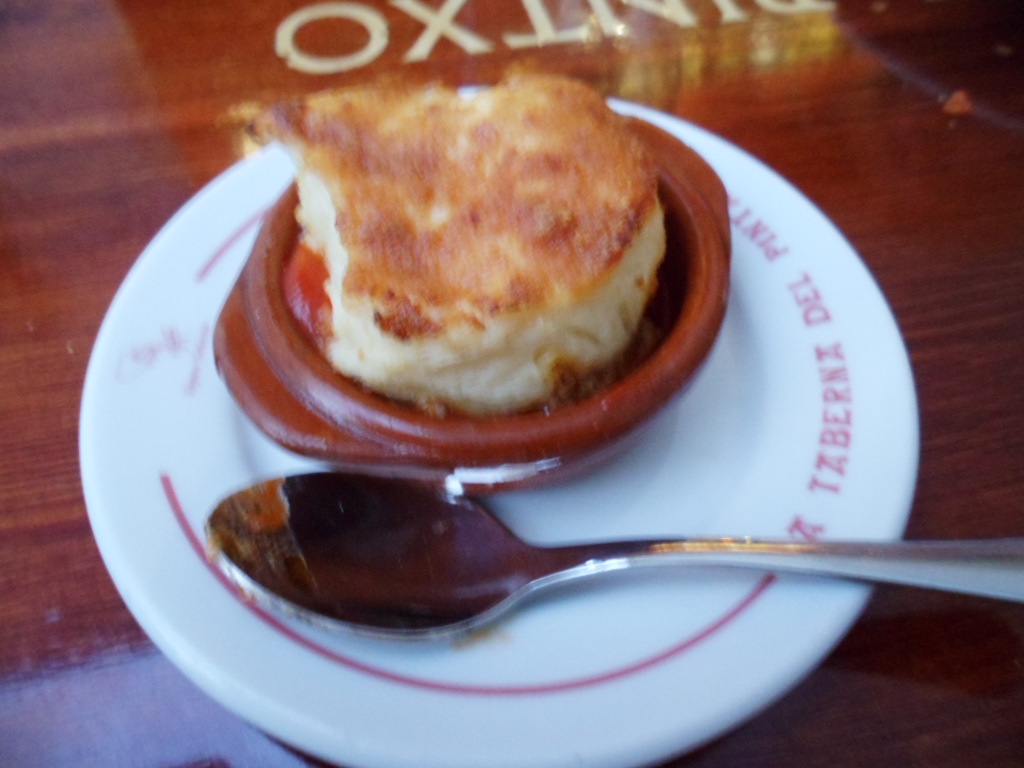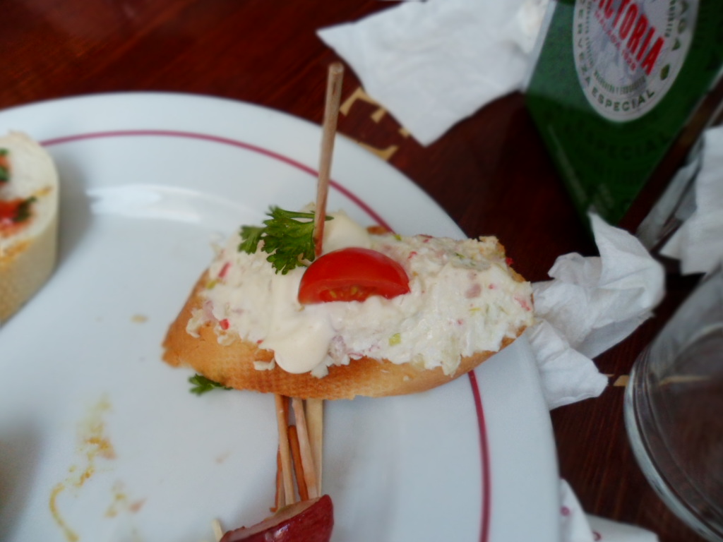 One of the first tapa to come around was the old favourite, tortilla. Basically it’s just onion, potato and egg but somehow the spanish manage to make it utterly delicious, i think vast quantites of scrummy local oil probably have a lot to do with it.