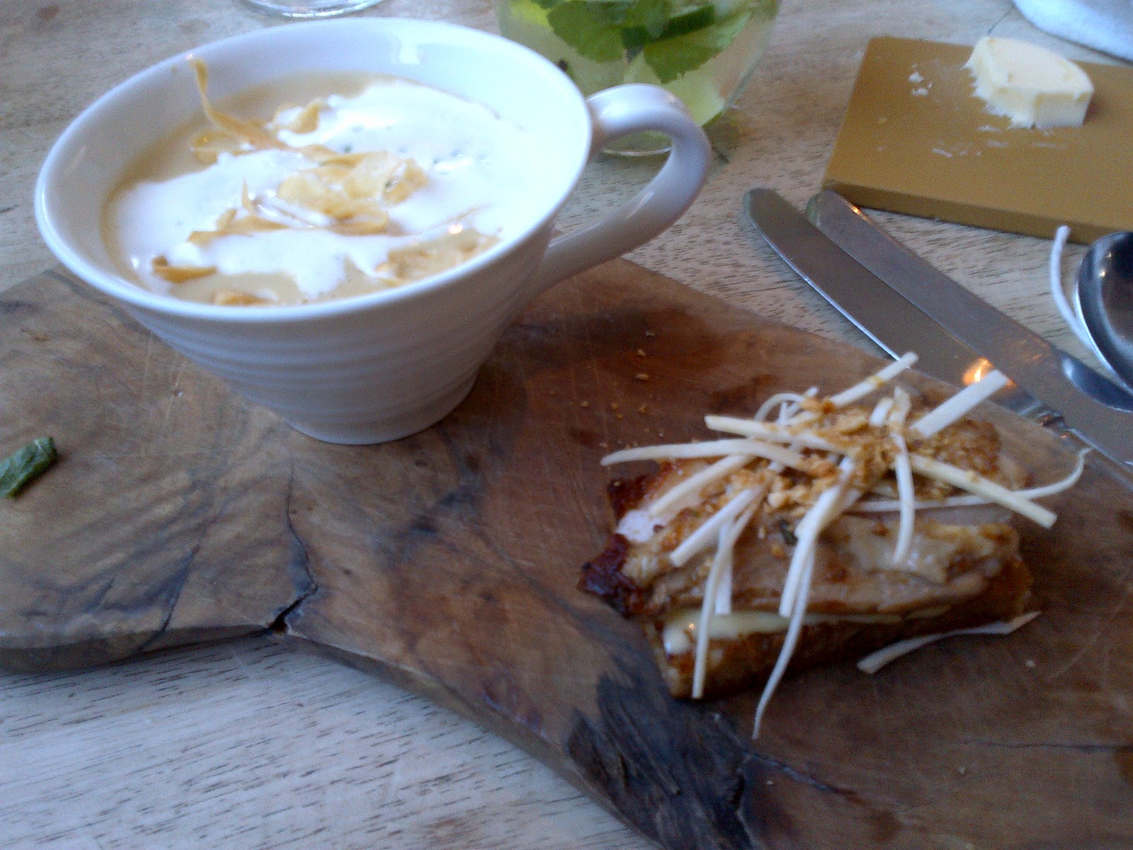 Shred all your of your chicken off the bone and get a big pan of salted water on the boil (you do want a big pan as if it’s too small the pasta won’t have the space to move around and it’ll end up claggy). In a separate pan, fry the onion and garlic until soft but not coloured in a little oil, then add the chilli powder- i used about a tsp of hot chilli powder but it’s totally up to you.