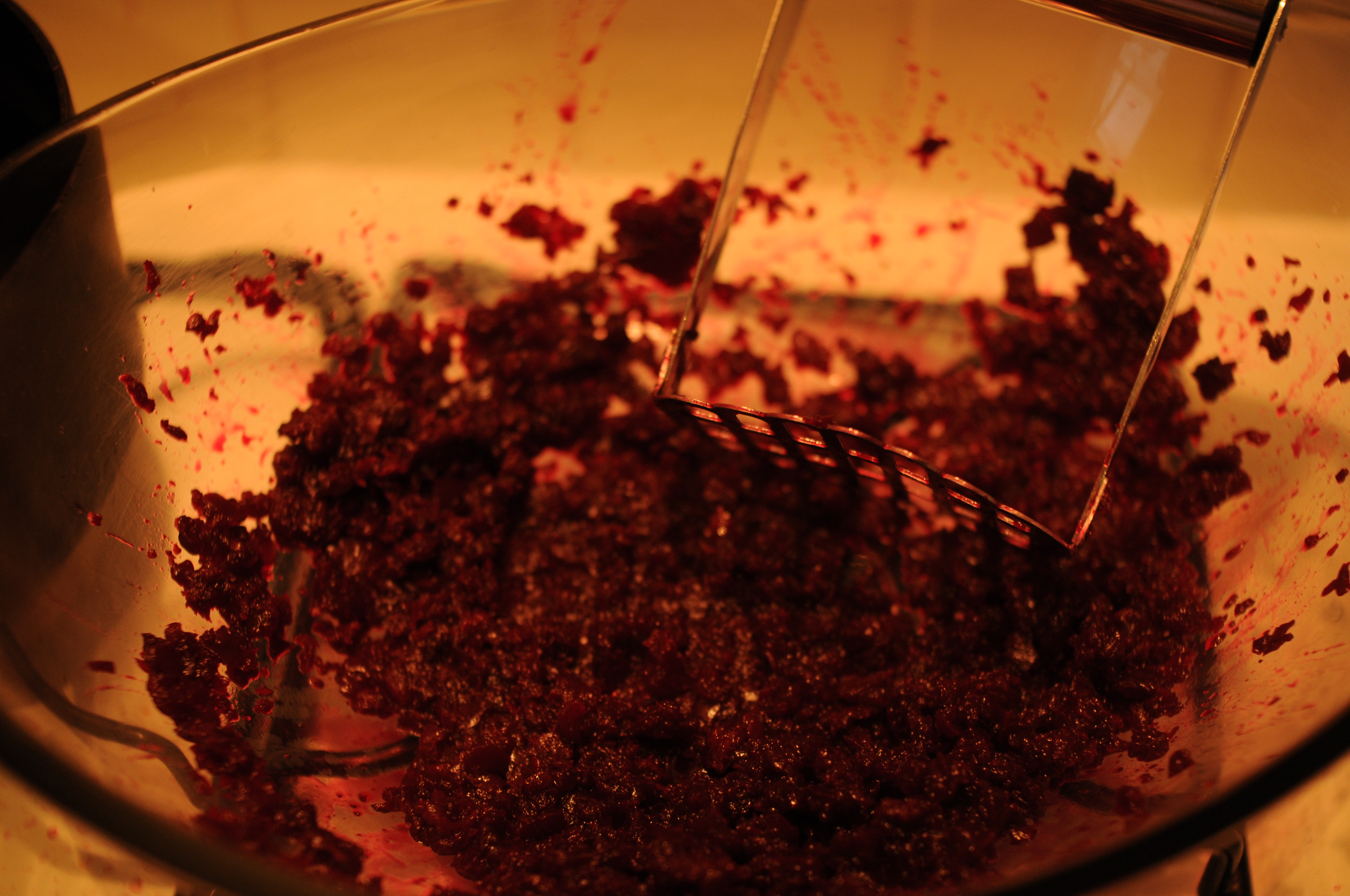 Pop the beetroot into a bowl and give them a good mashing. If there are a few little lumps left, it’s not a problem, it’s quite nice as it means you’ll have little jewelled flecks of it running throughout your bread.