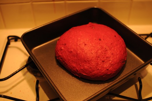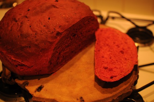 It’s not an overwhelming flavour, but the delicate sweetness of the beetroot is definitely there and makes the bread totally unique. I’m already planning on what to do with it as beetroot is great with so many things, from bruschetta with wild rocket and goats cheese, to canapes with smoked salmon and dill to scooping up hunks of beef stew, it’s a winner. It’s also a good way to cram in some extra veggies which is always a bonus and it manages to make me feel less guilty about eating bread with everything. I don’t know whether it’s the cold or something else but there’s just something so comforting about bread that i seem to be constantly finding new ways to factor it in to a meal.