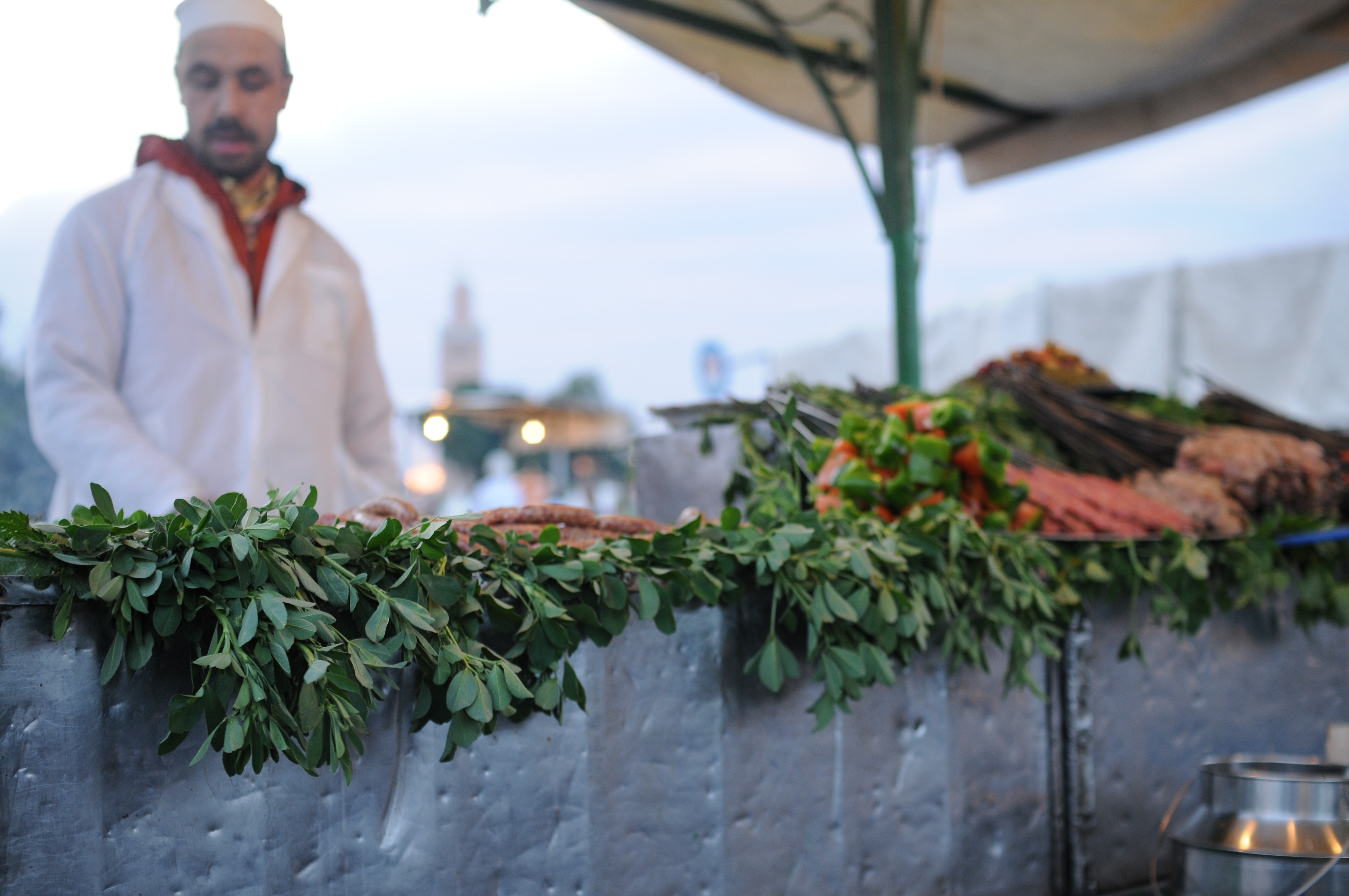 The smell of smoke whilst we sat and ate here was overwhelming. Everything was so fresh and after a slight miscommunication we ende up with a selection of all these different skewers which we cooked over coals right next to us. The greenery around the front is called epinard which translates to spinach, although is unlike any i’ve ever seen. Its cooked and chopped and made into some kind of dip with oil and lemon and spices and is utterly delicious. I wish i’d been able to get a more concrete recipe as it’s something i could eat daily. When eating at the stalls in the main square you’re often presented with a plate of this and a plate of a pulpy tomato salad thing, that and some bread and you’ve got yourself a cracking little lunch.