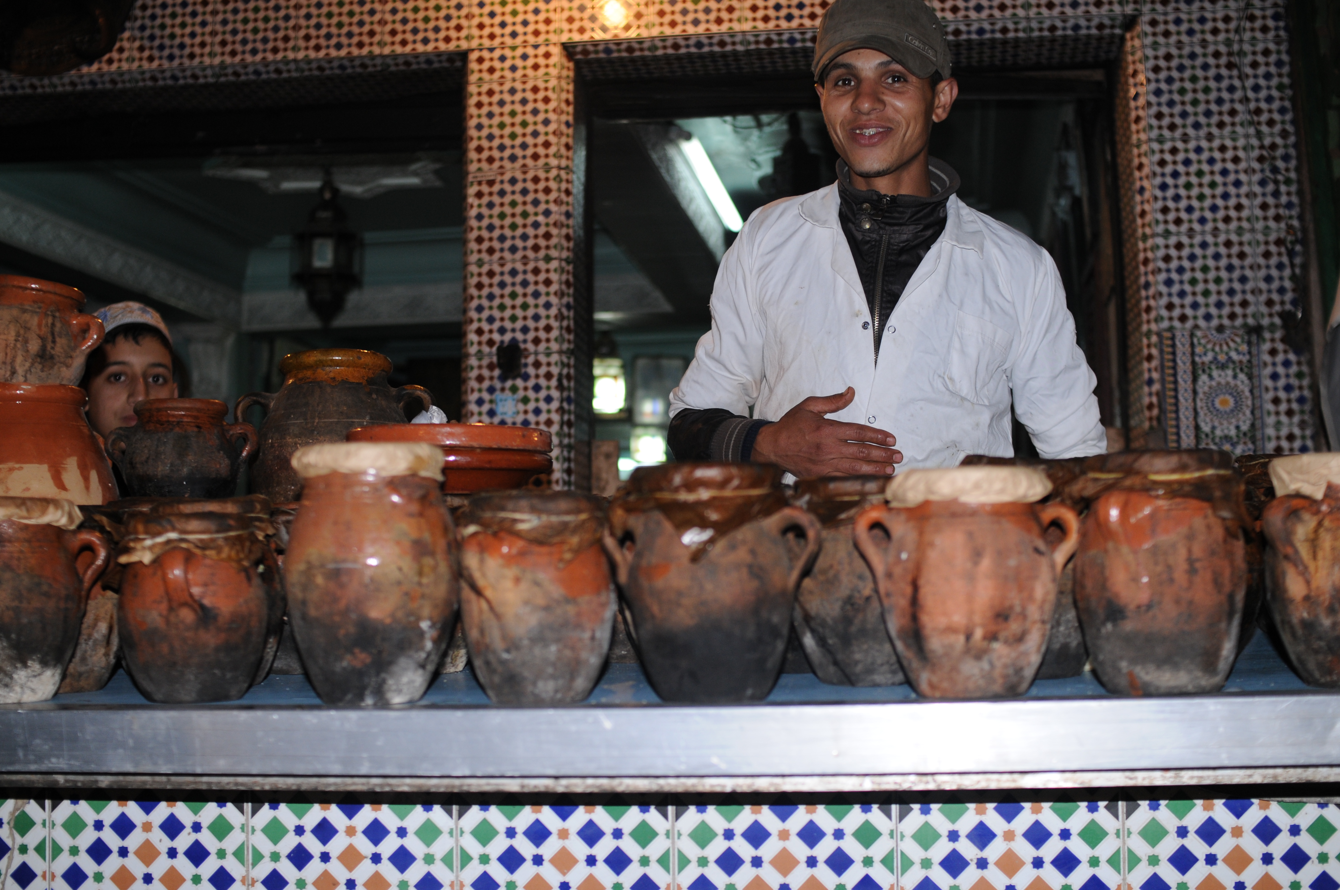 A lovely man selling Tangias. They’re clay pots filled with stew that are often cooked in the embers of the big communal bread ovens. Many people still don’t have their own ovens and so will fill up their tangias and drop them off at the oven in the morning, collecting them in the evening in time for dinner. Failing that, you can buy them from vendors like this.
